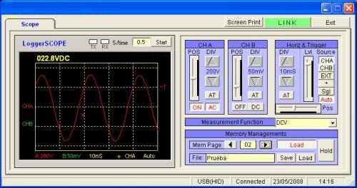 de 8", ancho de banda 25 MHz, interfaz USB,