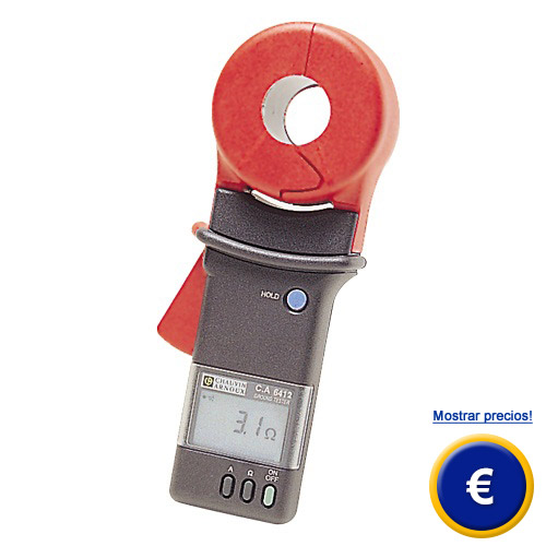 Con la pinza de puesta a tierra CA-6412 se mide directamente la resistencia contra tierra en conducciones eléctricas subterráneas. Es posible determinar corrientes y también corrientes de fuga hasta 30 A con la pinza de puesta a tierra CA-6412. La ventaja de la pinza de puesta a tierra, en comparación con los instrumentos convencionales para determinar la resistencia contra tierra es, que no se necesita picos de tierra. Esta característica de la pinza de puesta a tierra de Chauvin Arnoux es especialmente útil cuando no se pueden clavar los picos en el suelo. La medición de la resistencia contra tierra se realiza a través de dos bobinas que están incorporadas en la pinza de puesta a tierra CA-6412. La bobina de generador en la pinza induce una tensión definida en el conductor de tierra. La segunda bobina, la bobina de medición mide la corriente, que circula por este conductor y calcula la resistencia contra tierra. La pinza mide la resistencia contra tierra hasta 1200 Ω. Aquí encontrará una visión general otra