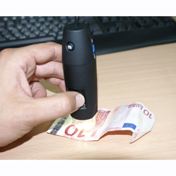 Inspección de un billete de 10 Euros con el microscopio USB