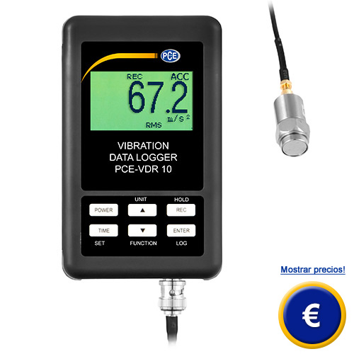 El registrador de vibración PCE-VDR 10 es un medidor de vibraciones de un eje. El registrador de vibracion puede medir en tiempo real y realizar un registro de datos. Los valores se almacenan en una tarjeta SD. Posteriormente puede analizar los valores en un PC. No se requiere ningún software en especial, pues los datos son almacenados en formato "xls", lo que permite leer los ficheros con el programa Microsoft Excel.
